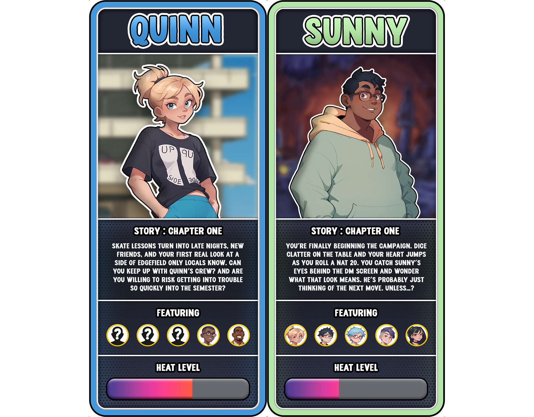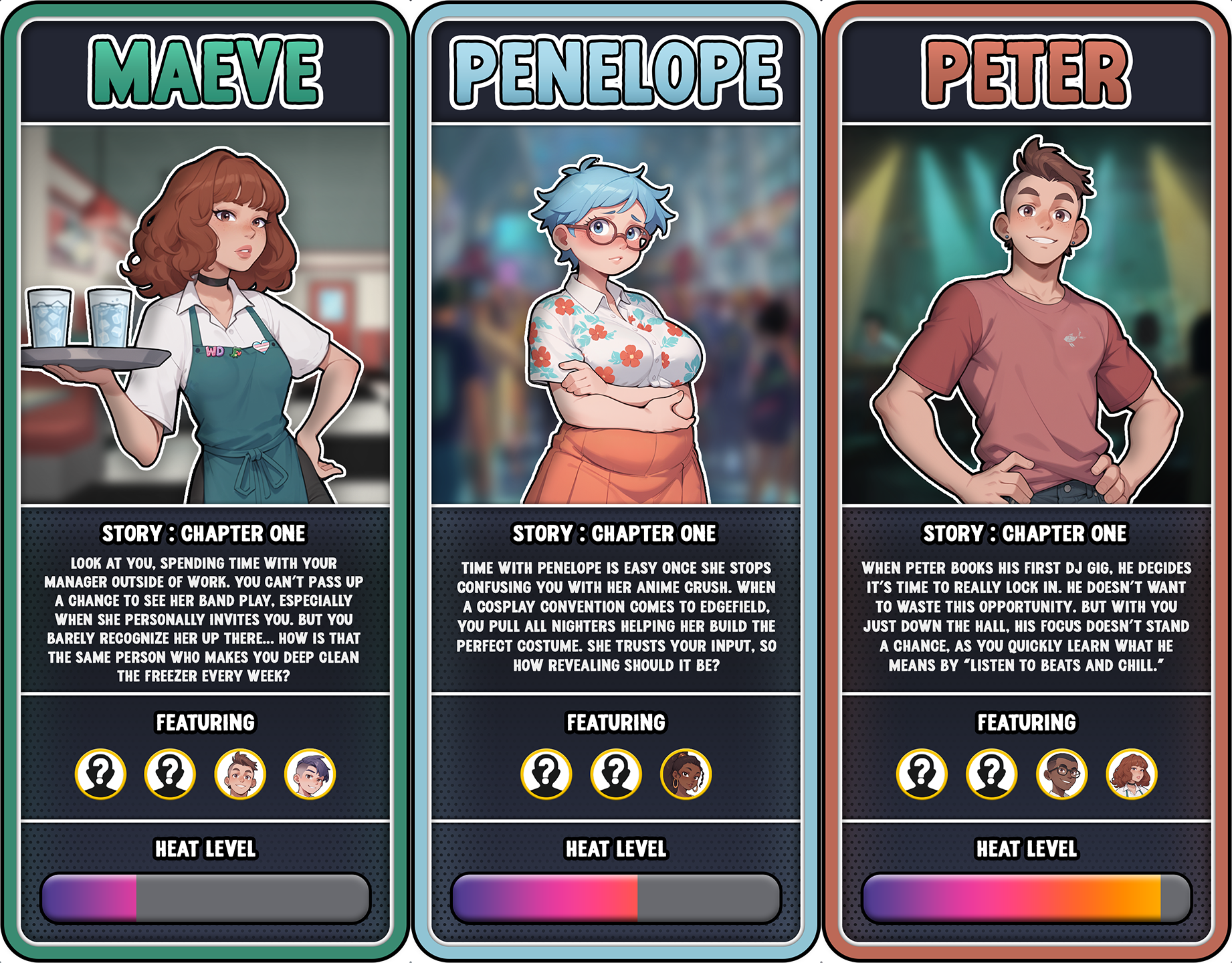 We're getting close to our very first Character Update Poll, where you will decide who gets featured in our first Character Update! So before all Patreon supporters begin voting on Friday, we wanted to share a bit about what you can expect from each character's storyline!