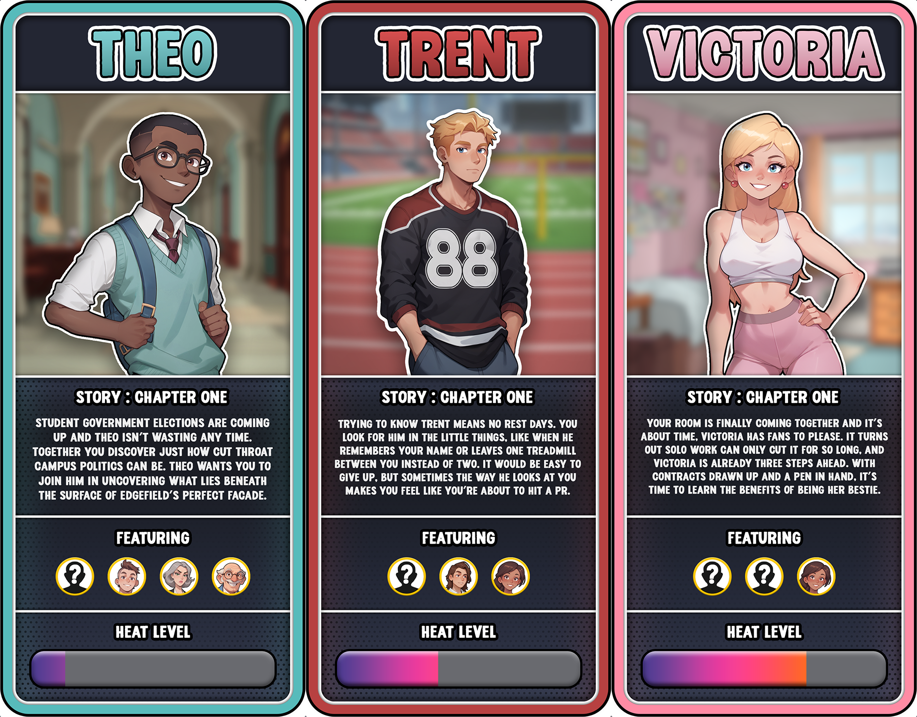 Hoping Trent character will get more update 👀 At first when I started playing my goal was to solo Penelope, but changed route to Trent.. cuz his challenging romance/friendship looks more fun (^^)